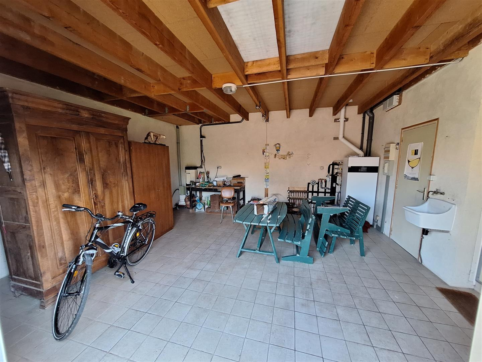 En annexe : un abri de jardin, une cave et un garage carrelé de 30 m².