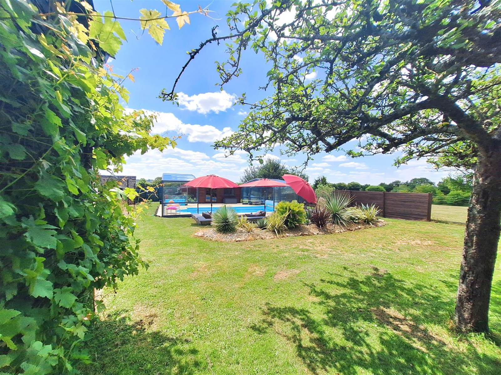 Pour vos moments de détente une grande terrasse avec piscine chauffée et couverte ainsi qu'un terrain de pétanque.