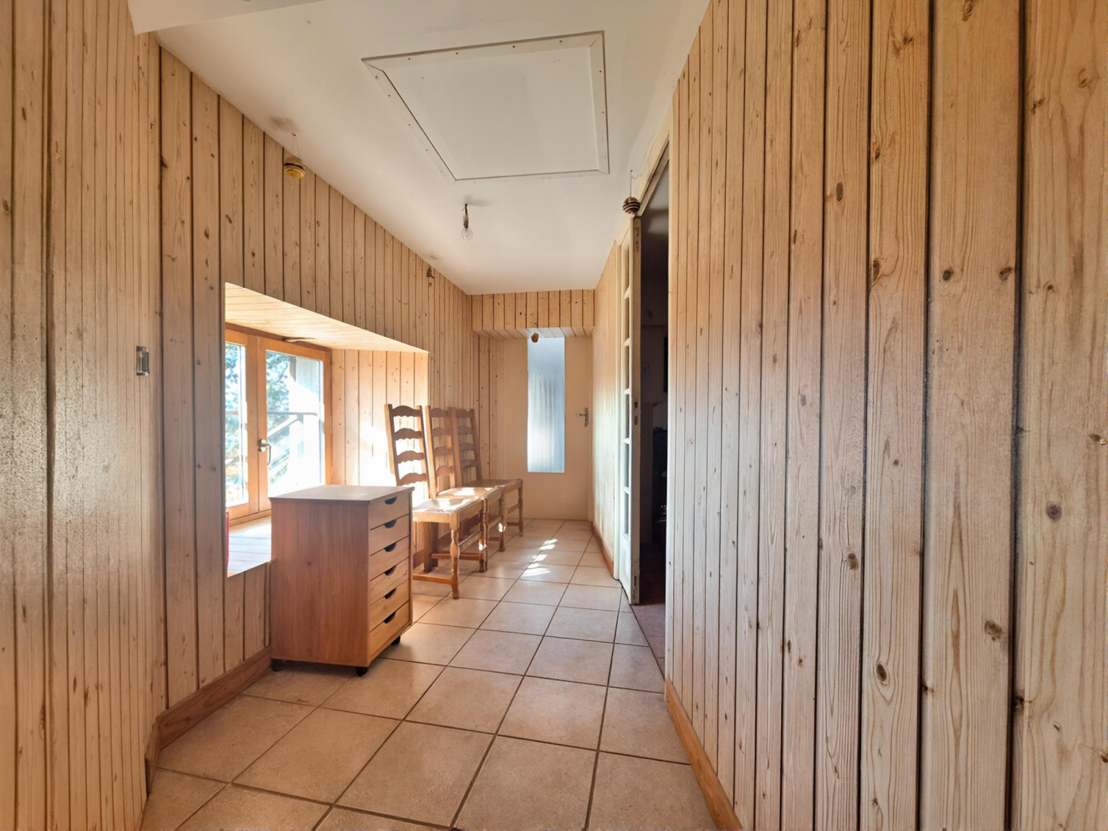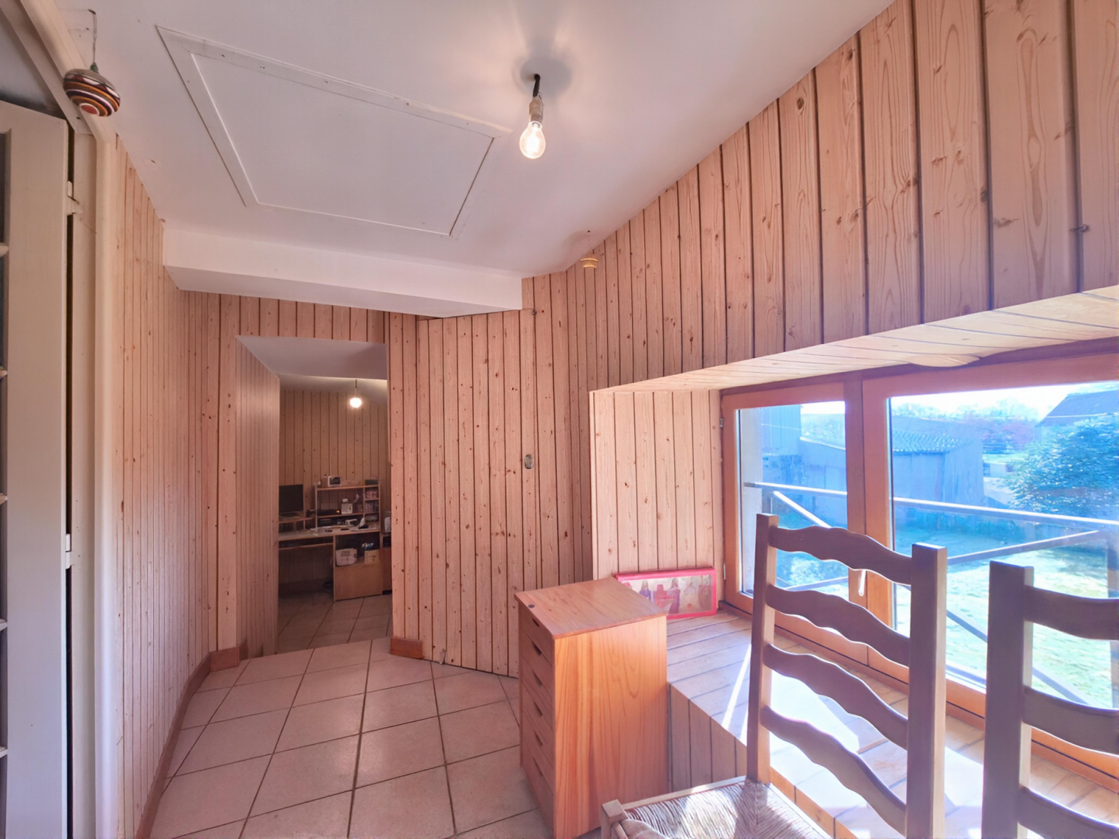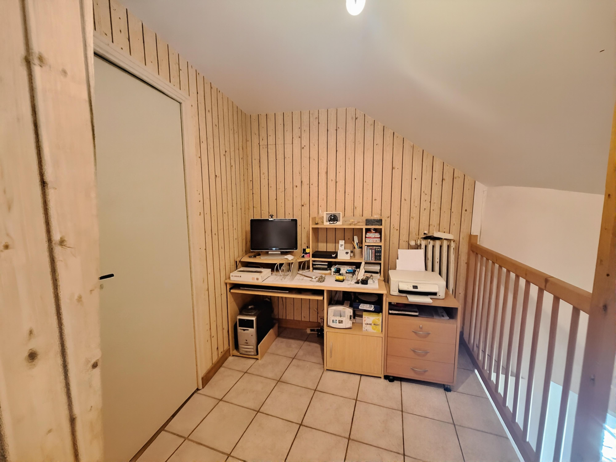À l’étage, un palier dessert deux chambres supplémentaires ainsi qu’une salle de bains avec WC, offrant un espace nuit bien distinct et fonctionnel.