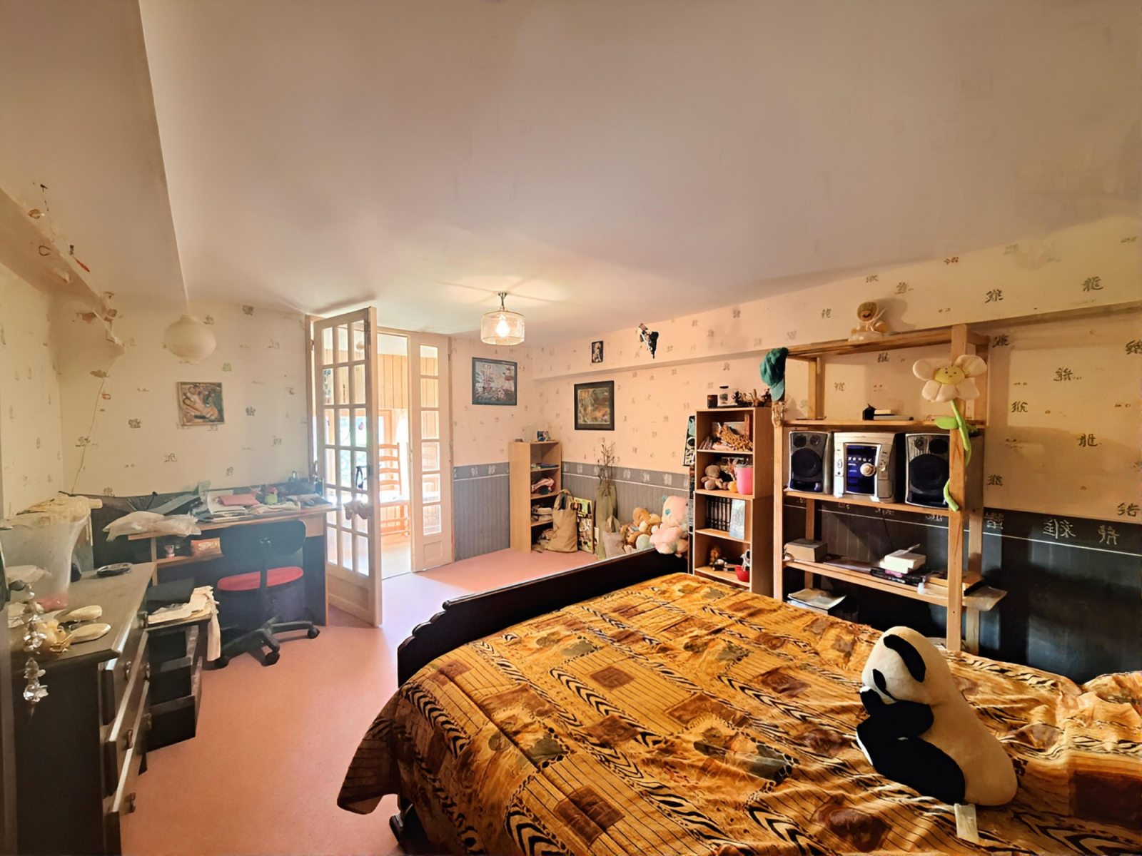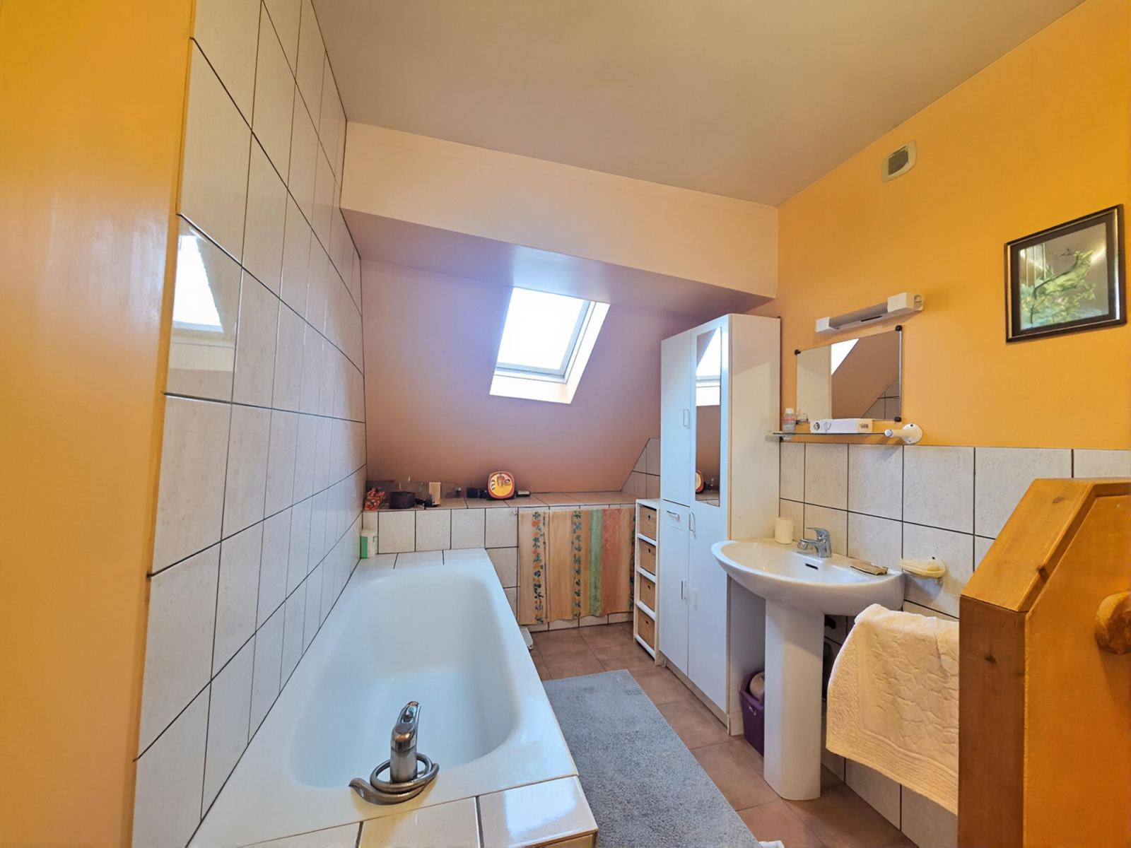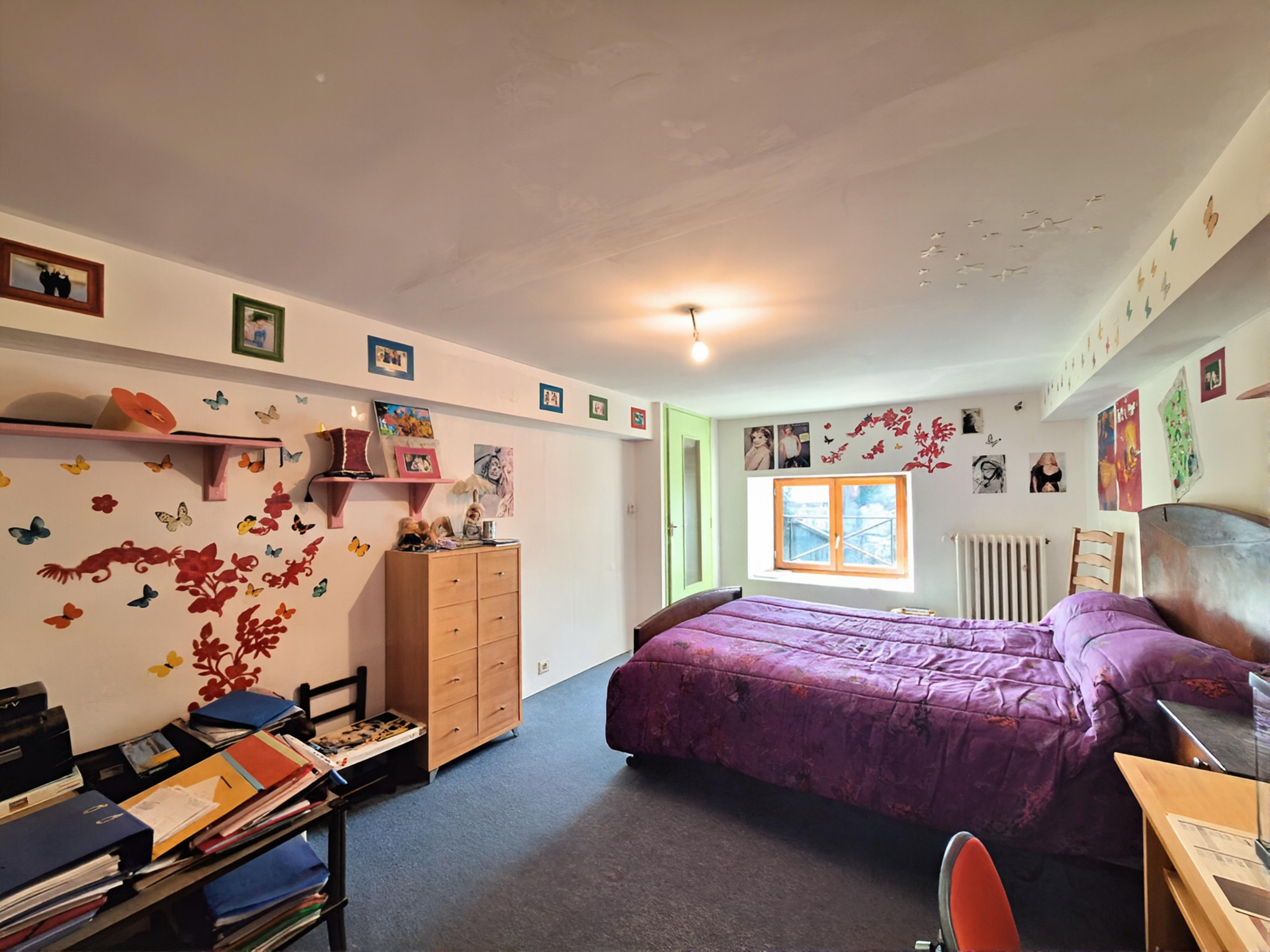À l’étage, un palier dessert deux chambres supplémentaires ainsi qu’une salle de bains avec WC, offrant un espace nuit bien distinct et fonctionnel.