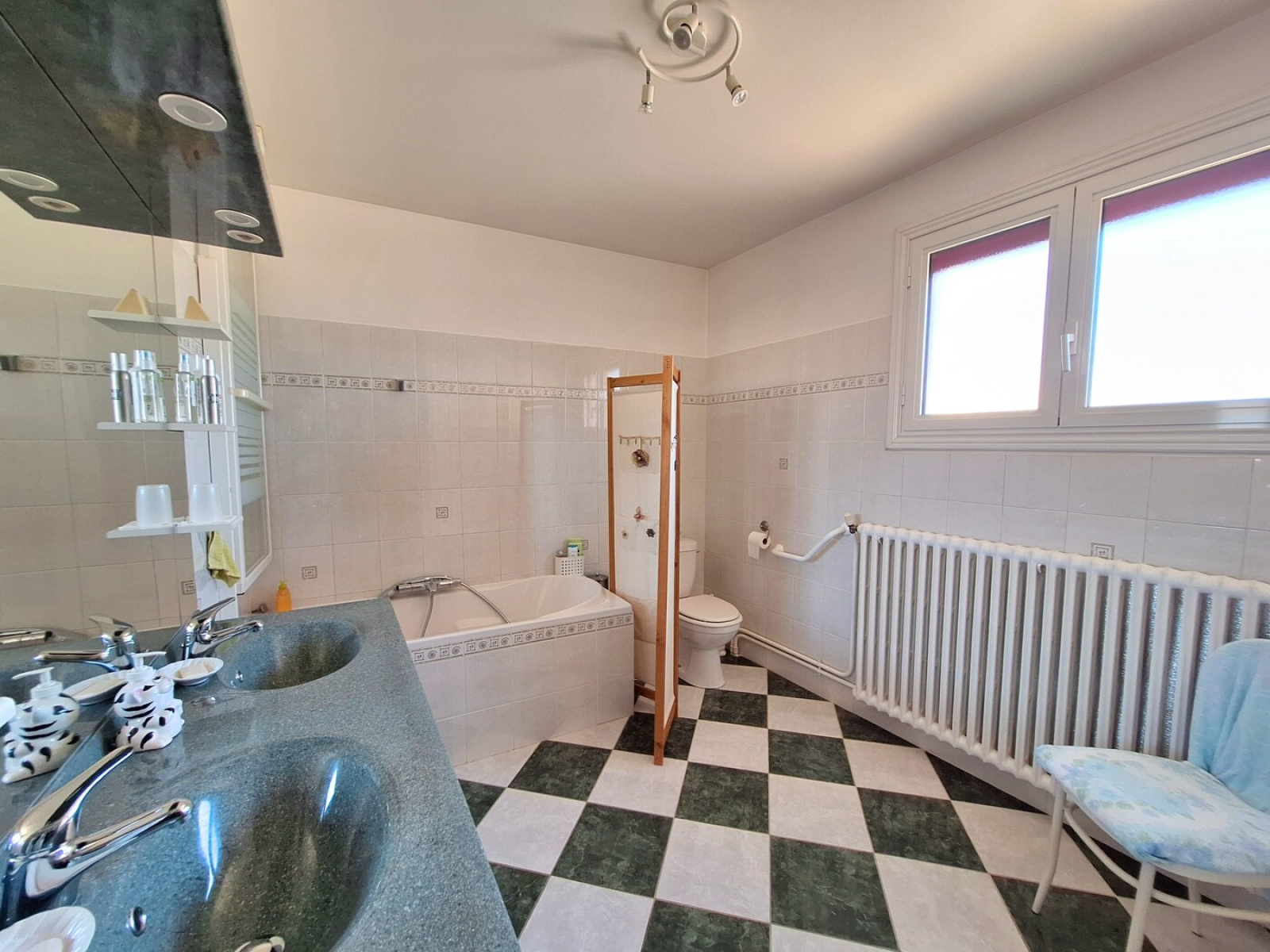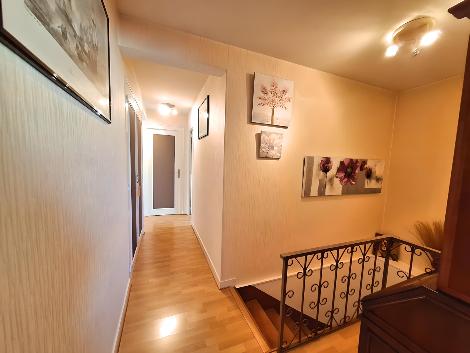 À l’étage, quatre belles chambres avec balcon vous attendent, parfaites pour accueillir toute la famille. Une grande salle de bains avec WC complète cet espace nuit.