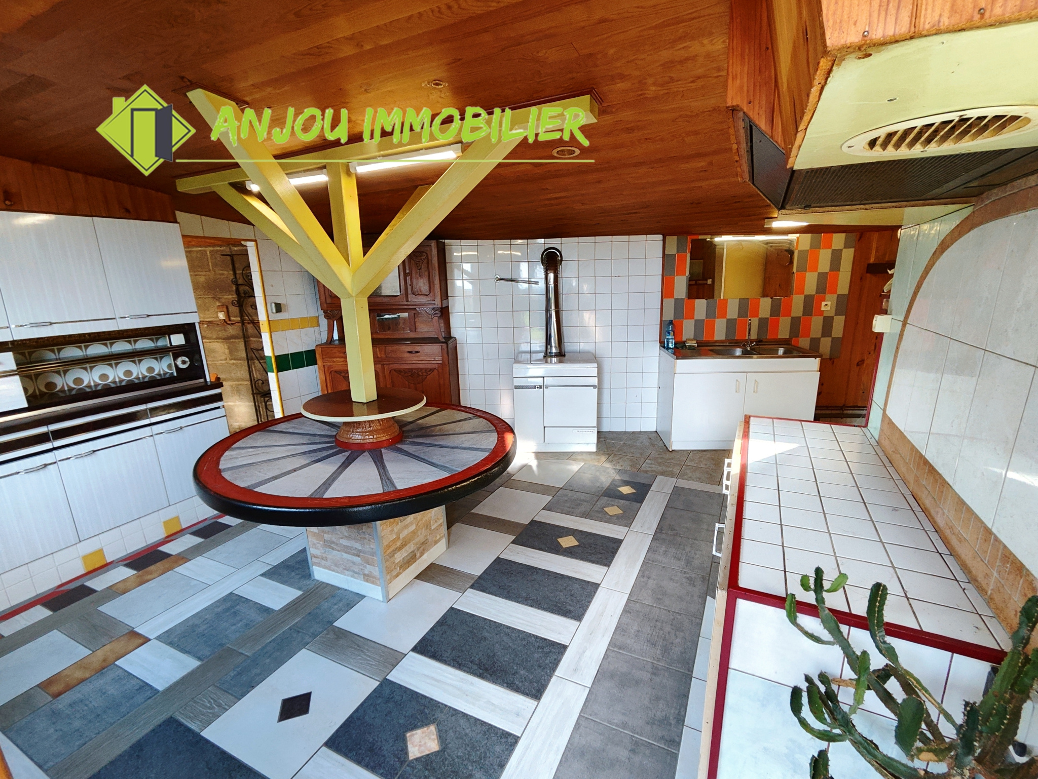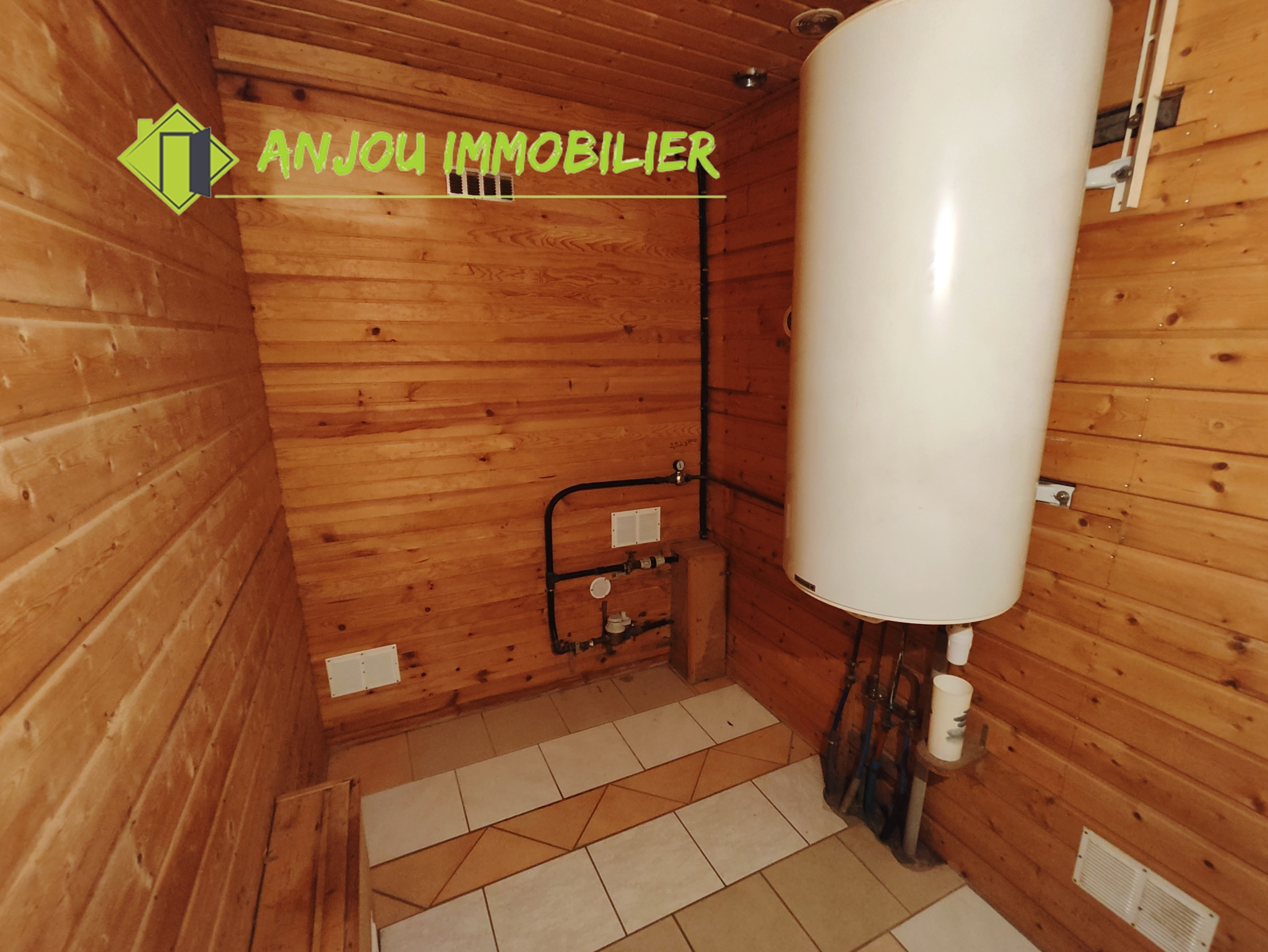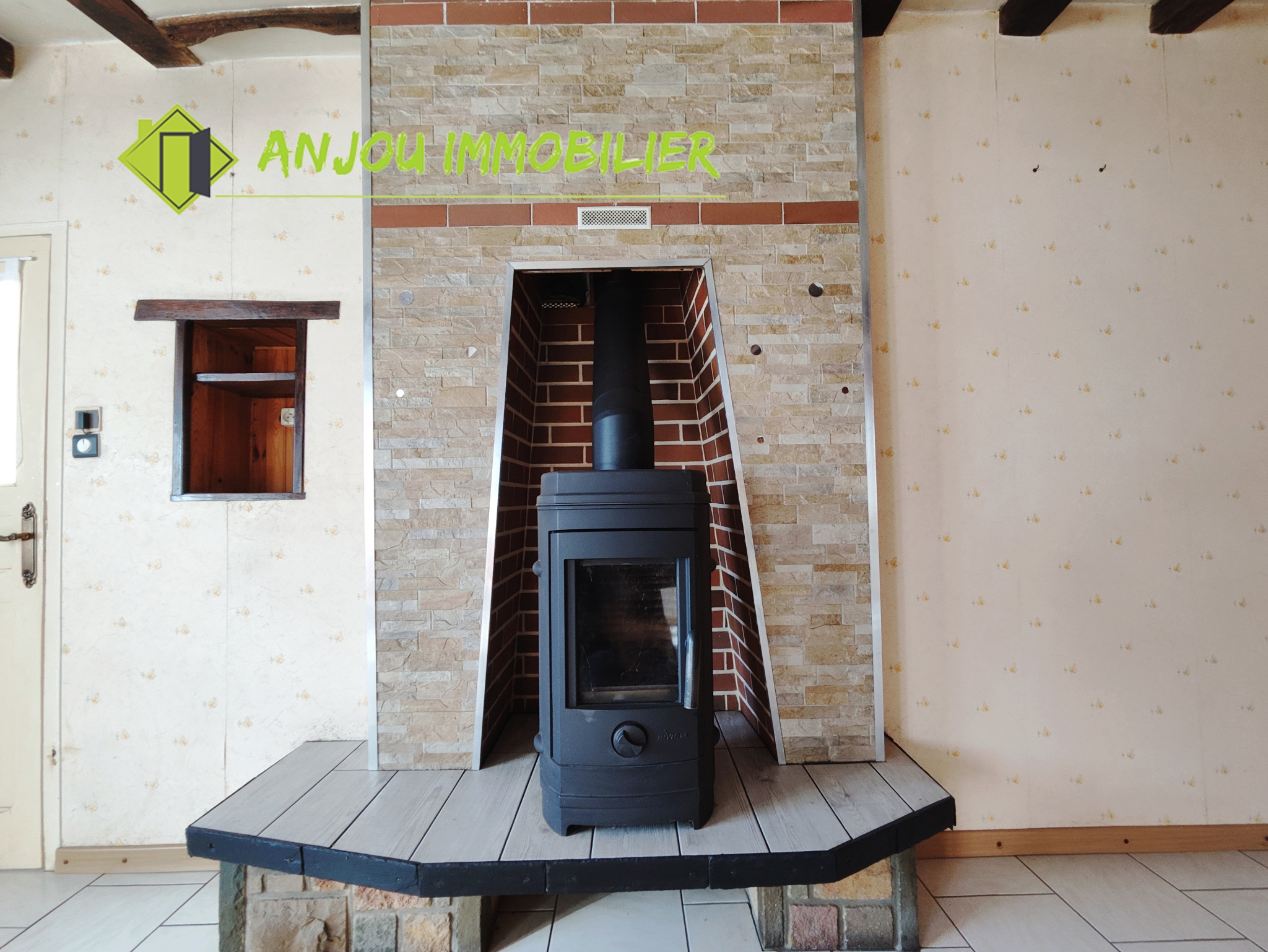 Au rez-de-chaussée, une arrière-cuisine pratique précède un couloir desservant une salle d’eau et un débarras. La cuisine s’ouvre sur un salon chaleureux, agrémenté d’un poêle à bois, créant un espace convivial. Un bureau ainsi qu’une chambre complètent ce niveau, permettant une vie de plain-pied.